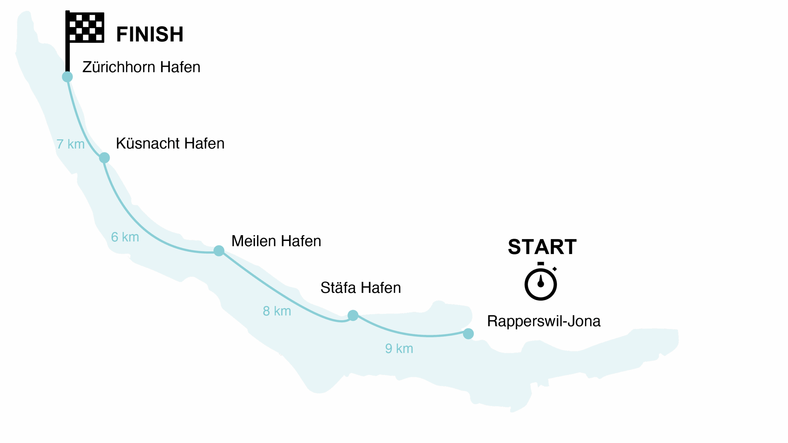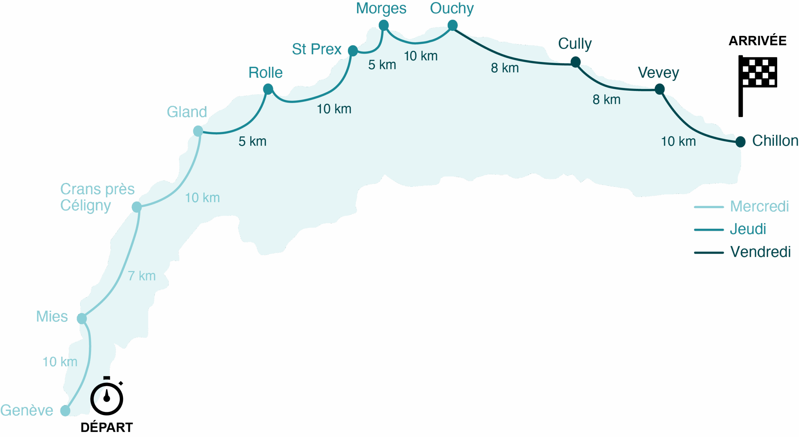 La traversée du lac Léman est divisée en plusieurs relais de 8 à 10 km.